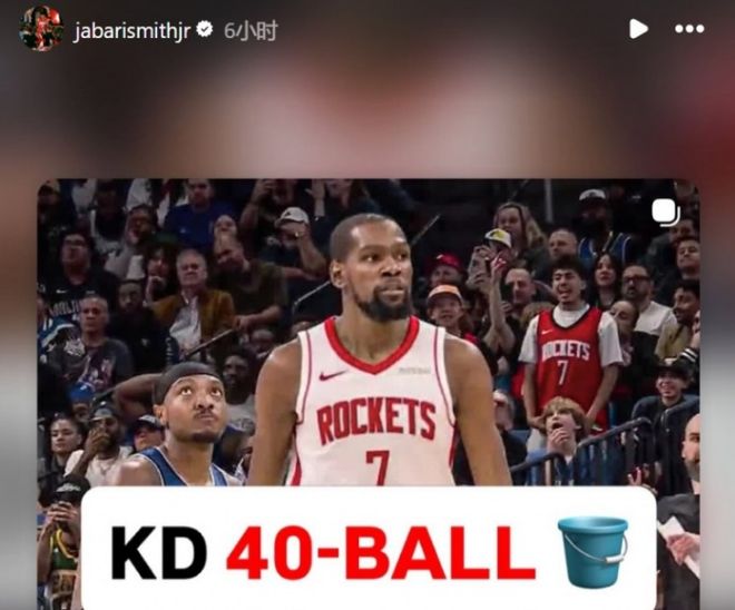 火箭内讧门落幕:杜兰特小号事件主角申京小贾转发KD40分海报
