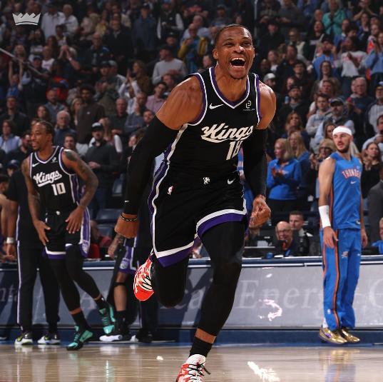 此役重返俄城的威少,被国王提到了首发阵容,对阵自己的后辈亚历山大,今夏一度面临无球可打处境的三双王,此役面对MVP亚历山大打得非常冷静,整个上半场让有着一分王外号的亚历山大,没有获得一次罚球的机会,这也是国王能够带着4分领先优势,结束上半场争夺的原因。