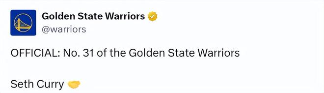 勇士官宣签下塞斯-库里!他将身穿31号球衣:明日首秀战雷霆